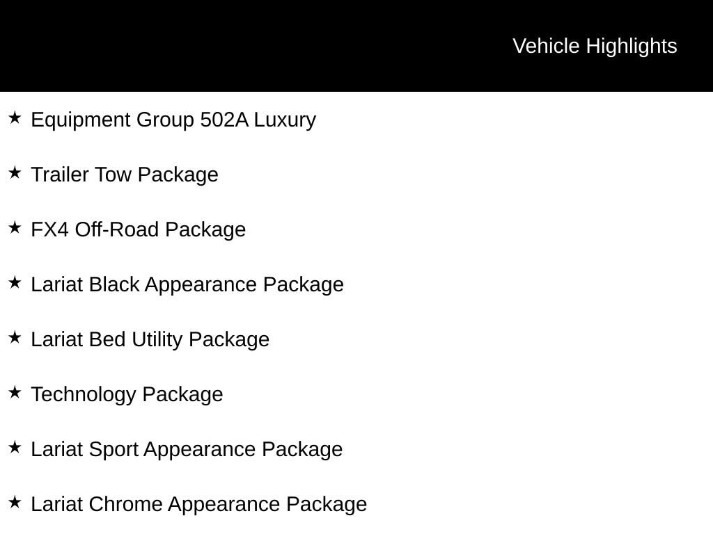 Comfort and convenience are prioritized with features like heated and ventilated front seats, a heated steering wheel, and a power tilt/telescoping steering column with memory. The Lariat's spacious interior and thoughtful storage solutions ensure that you and your passengers will enjoy every mile.