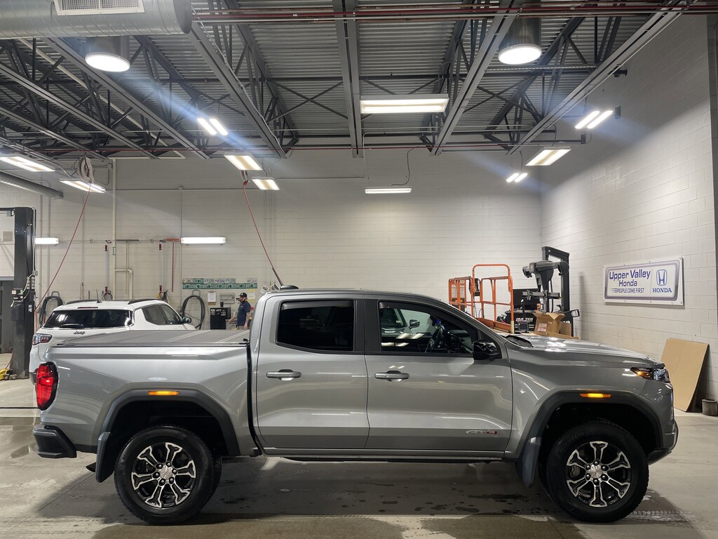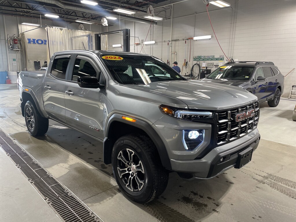 2024 GMC Canyon AT4 4D Crew Cab, 2.7L I4 Turbocharged DOHC 16V LEV3-SULEV30 310hp, 8-Speed Automatic, 4WD, Sterling Metallic, Jet Black/Timber Cloth. #1 Honda retailer in Vermont! 2.7L I4 Turbocharged DOHC 16V LEV3-SULEV30 310hp 8-Speed Automatic