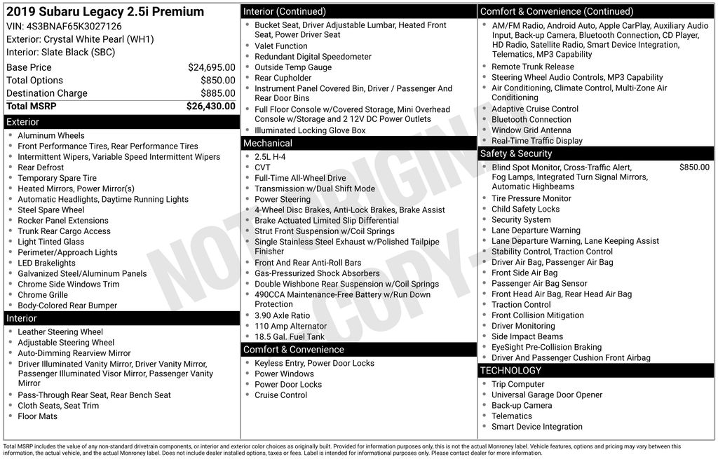 2019 Subaru Legacy 2.5i Premium